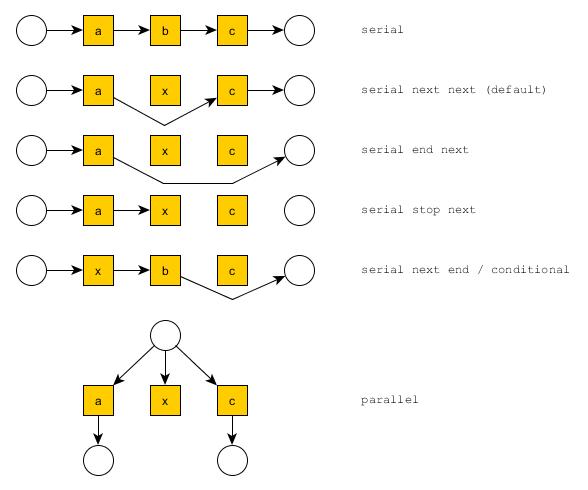 The mode specification follows the pattern <parallel or serial or conditional> <fail behaviour> <succeed behaviour>.